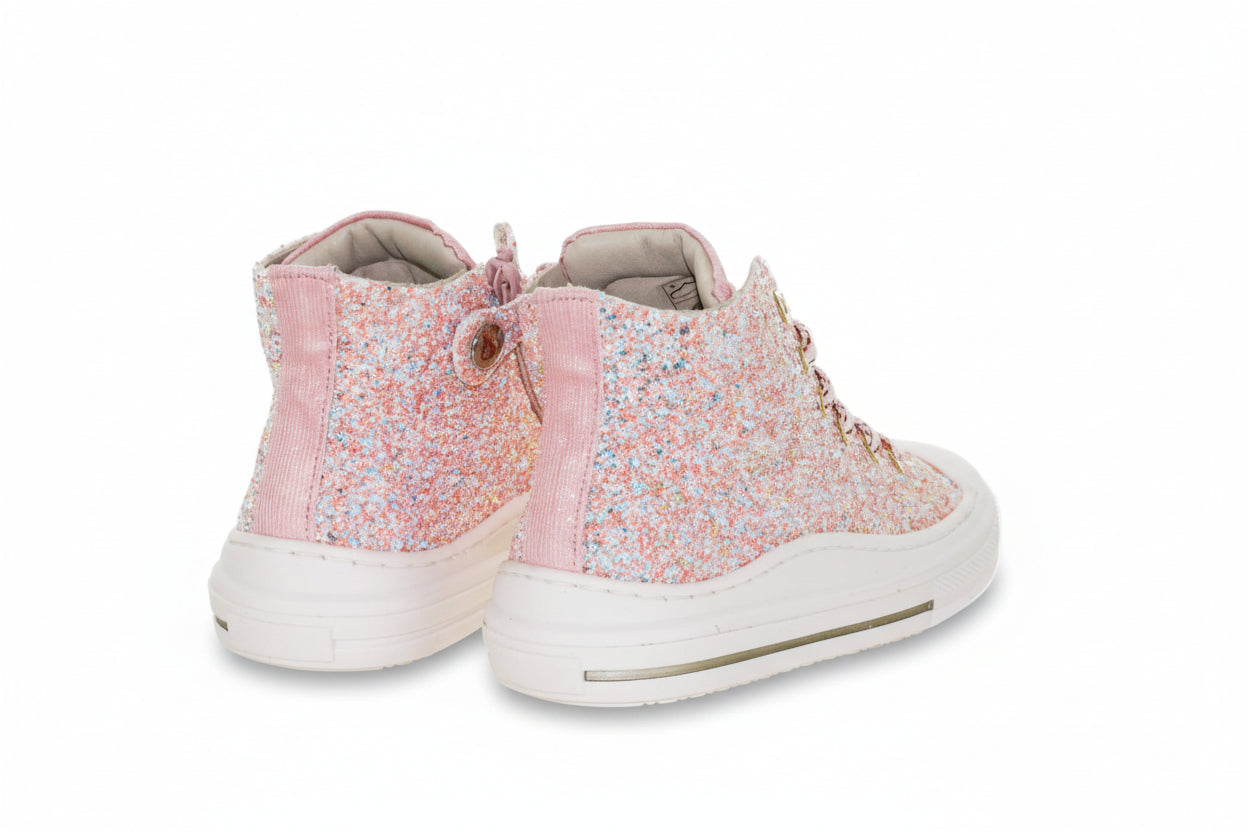 De comfortabele binnenvoering houdt de voeten fris en droog, zodat je kind zonder problemen kan spelen en bewegen. Met de stevige vetersluiting blijven deze sneakers perfect op hun plek, wat extra ondersteuning biedt tijdens actieve dagen. Kies voor de Zecchino D'Oro sneakers in multi-color roze en laat jouw kind elke stap met flair zetten.